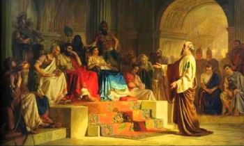 Павел высадился в Путеоле. Предупрежденные церковью этого города (Деян. 28:14- 15), члены римской христианской общины встретили Павла примерно в 30 милях (48 км) к юго-востоку от Рима, у Алпиевой площади (торговый городок, основанный Аппием Клавдием Кеком, строителем Алпиевой дороги) и Трех гостиниц, станции, находящейся прямо к югу от Алпиевой площади, и сопроводили его в город. Согласно преданию, и Петр, и Павел погибли мучениками в Риме, во время гонений Нерона.