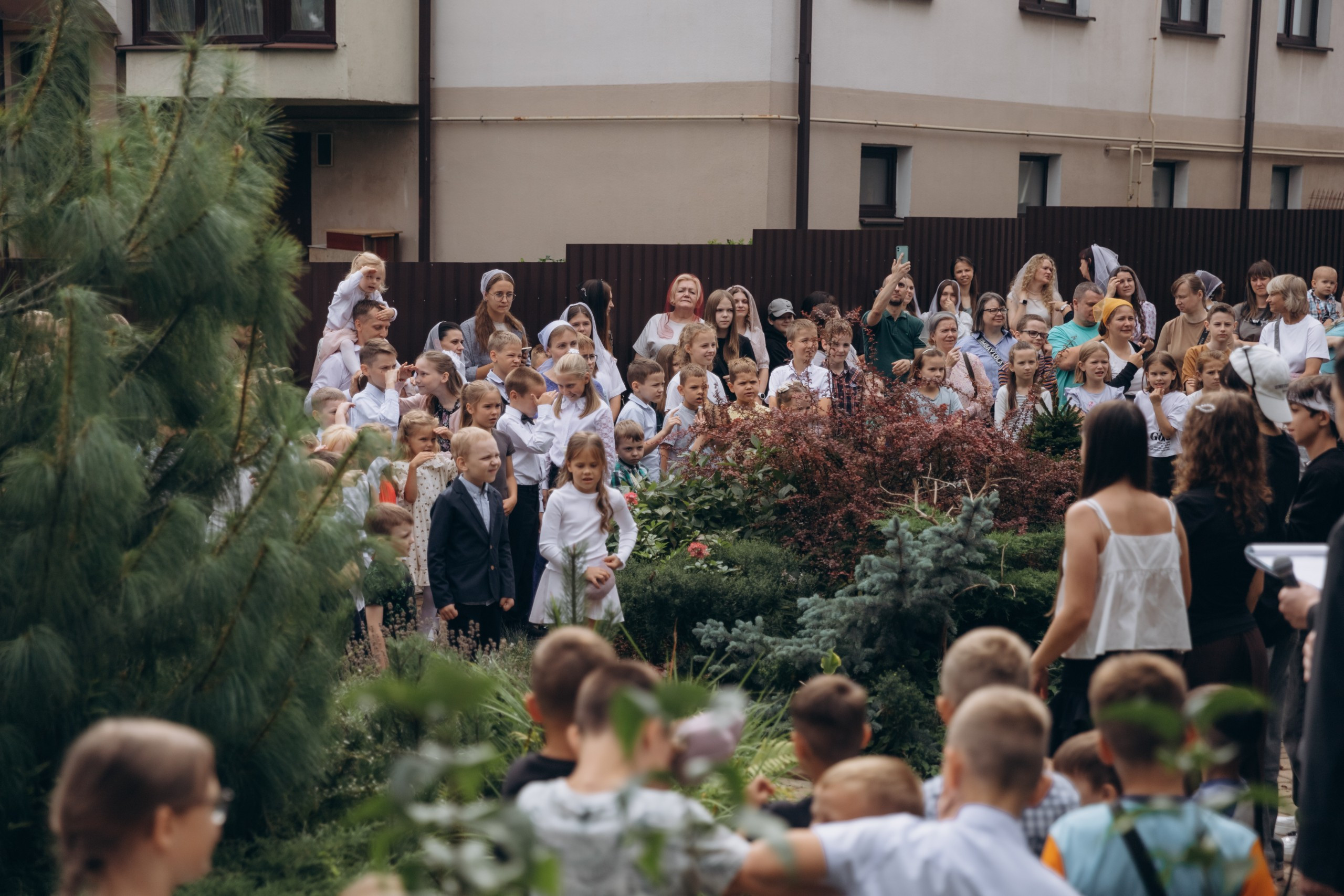 По традиции во дворе церкви проходила торжественная линейка для ребят. Была составлена интересная программа. В постановке были задействованы несколько ребят в роли разбойников, которые стали мешать проводить линейку. Затем прибежала служба порядка и спрашивала у ребят, как разобраться с провинившимися. И ребята весело восклицали: «Пригласить в Воскресную школу!» А всё потому, что в нашей воскресной школе самые лучшие уроки, игры и друзья, а самое главное - можно познакомиться с великим Богом. Затем вместе помолились, прославили Бога в песнях. Одна из них всем известная песня «С тобою друг, с тобою брат, тебе он очень-очень рад!»